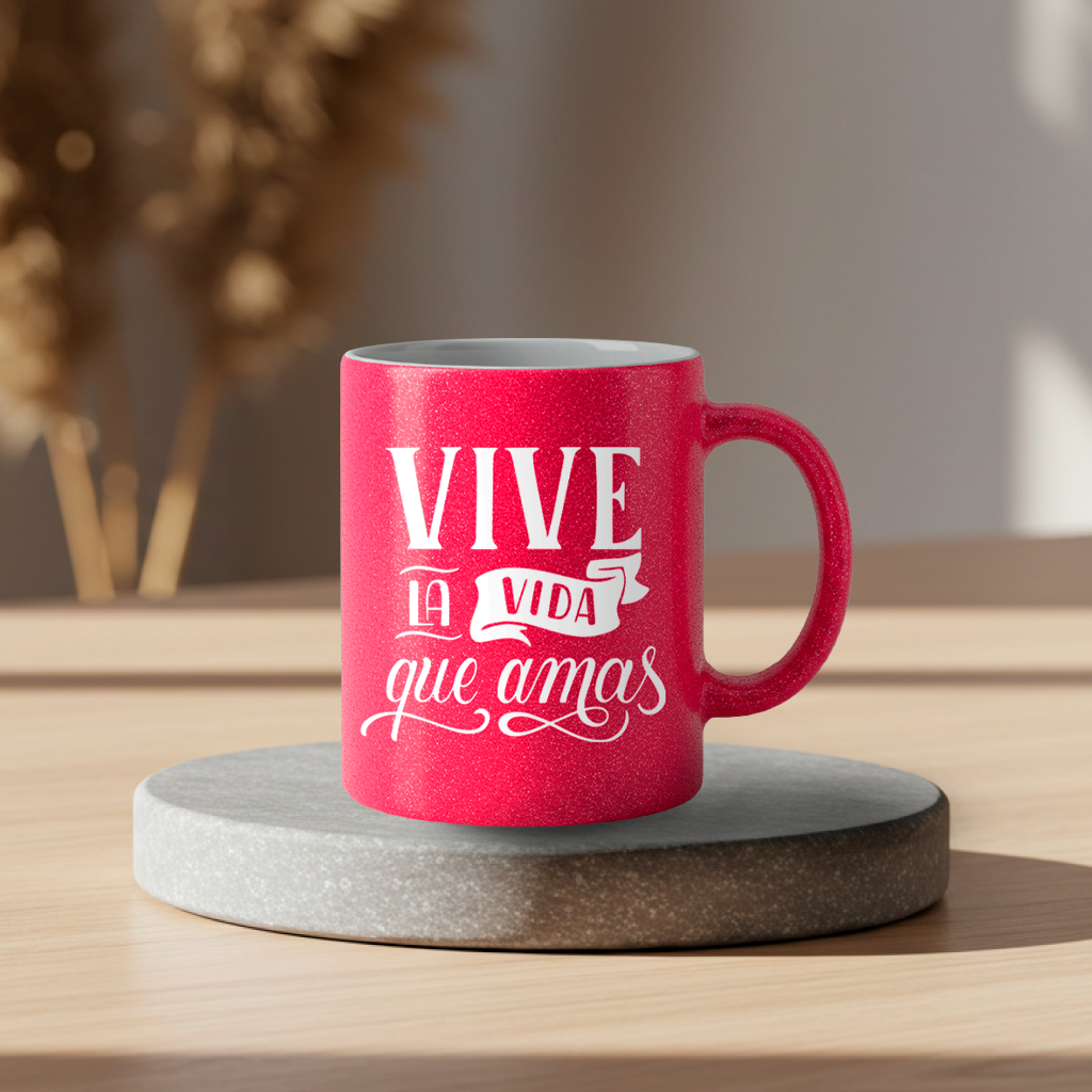 La Taza Escarchada Full Color con interior en blanco es una pieza de cerámica de alta calidad diseñada para quienes buscan un acabado llamativo y elegante. Su exterior cuenta con un efecto escarchado que resalta los colores del diseño, mientras que el interior liso en color blanco aporta contraste y limpieza visual.